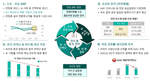 신석영 연구원 "전장 및 전력용 반도체는 수급차질이 지속되며 품귀현상이 지속될 수 있으나, 메모리는 수요둔화와 설비 증설 영향으로 가격하락 압력이 커질 수 있다"고 말했다.