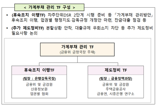 금융위원회와 금융감독원이 본격적으로 가계부채를 관리하기 위해 태스크포스(TF)를 구성하고, 가계부채 관리방안의 후속조치 이행계획을 점검했다고 1일 밝혔다.