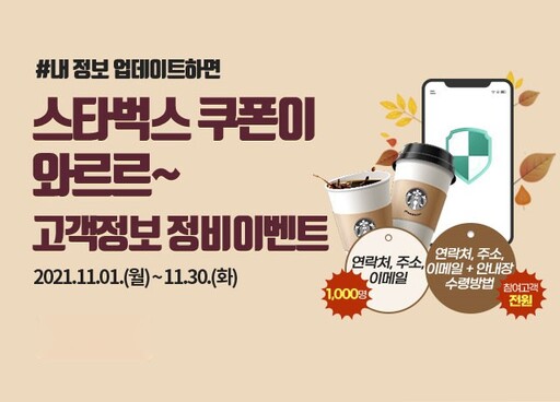 고객정보 업데이트를 한 고객에게는 1000명 추첨을 통해 스타벅스 커피쿠폰을 선물한다. 안내장 수령방법도 함께 변경한 고객에게는 전원 스타벅스 커피쿠폰을 증정할 예정이다.