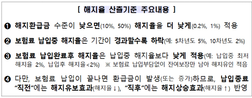 앞으로는 해지 환급금 수준이 낮으면(10%, 50%), 해지율을 더 낮게(0.2%, 1%) 적용한다.