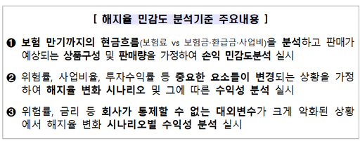 보험사가 상품 설계시 재무적 영향을 미리 확인하고 판매할 수 있도록 '해지율 민감도 분석기준'도 적용한다.