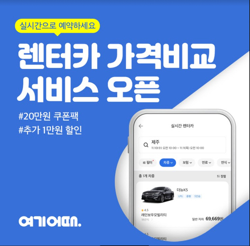 ■ 여기어때, 실시간 '렌터카 가격비교' 서비스 오픈