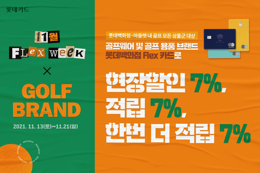 또한 11월 플렉스 위크는 골프 브랜드를 대상으로 진행한다. 플렉스 위크 기간 동안 골프웨어·용품 브랜드 매장에서 롯데백화점 플렉스 카드로 결제 시 7% 엘포인트를 추가 적립 받을 수 있다.
