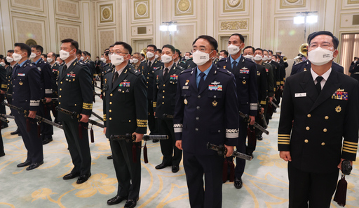 문 대통령은 "장군단이 견위수명의 자세로 국가에 위태로움이 오지 않도록 먼저 살피고, 국가가 위기에 처하면 이를 극복하는 데 앞장서 달라"며 "강한 국방력의 나라 대한민국 장군이자 한반도 평화의 첨병이 되어 주길 바란다"는 당부의 말도 남겼다.