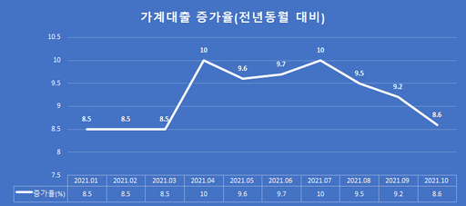 실제로 금융위에 따르면 전 금융권 가계대출 증가율은 차주별 DSR규제가 적용되기 시작한 7월까지 증가세를 이어가다 8월부터 감소하기 시작했다. 6월 가계대출 증가세는 전년 동기 대비 9.7%로, 7월 10%까지 증가하다 8월 9.5%, 9월 9.2%, 10월 8.6%로 감소했다. 은행에서 가계대출 중단을 통해 대출 증가속도를 낮췄지만 대출공급을 재개할 경우 또 다시 대출수요가 증가할 수 있다는 설명이다.