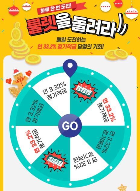 연 최대 33.2%의 금리를 제공하는 '뱅뱅뱅 33.2% 정기적금'이 대표적이다. 이 상품은 기존 고금리 특판 납입금액이 주로 월 10만원 선으로 제한되던 것과 달리 월 최대 100만원까지 납입 가능해 짠테크족을 중심으로 관심을 모았다. 납입기간 6개월을 채우면 200만원에 가까운 이자를 받을 수 있어 업계에서도 '역대급 특판'이란 말이 나왔다. 단, 이 상품은 추첨을 통해 선정된 32명만 가입할 수 있다.