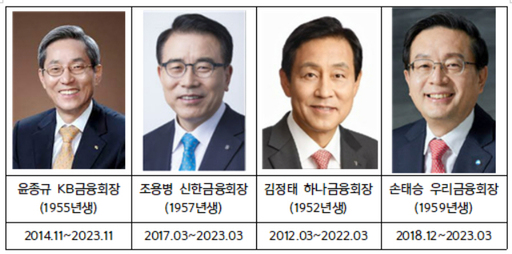 금융지주 수장들은 임기만료 시기가 대부분 2023년으로 여유로운 만큼 경영성과를 쌓고 후계구도 관리에 집중하는 모습이다.