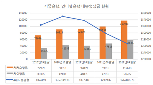 여기에 인터넷은행들은 중저신용자 대출 증가 만큼 대손충당금을 쌓아야 한다.