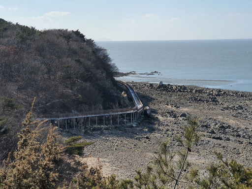 당넘해변이 펼쳐진 바닷가로 해안데크길이 펼쳐져 있다. 답답했던 마음은 탁 트인 서해바다 풍경에 눈 녹듯 사라진다. 460m로 조성된 해안데크길은 바다위로 길을 낸 트레킹 길이다. 만조 때는 바다위를 걷는 느낌일 것이다. 괭이부리 전망대를 지나면 영화로 더 익숙해진 섬 실미도가 눈앞에 펼쳐진다. 잔잔한 파도소리와 간간히 들리는 갈매기들의 지저귐이 정겨움을 더 한다. 트레킹 코스는 실미해수욕장을 앞에서 우회해서 산길로 이어진다.