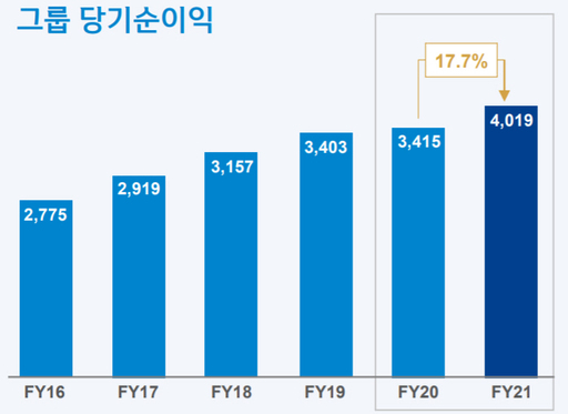 이태경 그룹재무부문장(CFO)은 "일회성 비용을 제외한 경상수준의 연간 당기순이익은 약 4조5000억원"이라며 "4분기 당기순이익은 전분기와 비교해 감소했지만, 일회성 비용을 제외한 경상이익은 지난분기 수준을 유지했다"고 말했다.