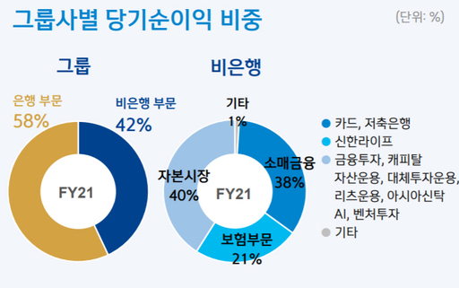 신한금융그룹이 지난해 당기순이익 4조193억원을 달성했다. 대출 금리가 오르면서 이자이익이 증가하고, 증권 카드 등 비이자이익이 확대됐기 때문이다. 배당금은 분기배당 560원을 포함한 1960원을 실시할 예정이다.