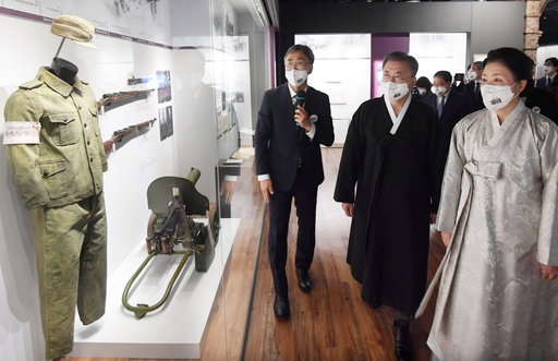 문 대통령은 이때 "독립군 자료가 중국에 많지 않냐"고 물었고, 전시 해설을 한 관계자는 "중국에서 찾아오려 했는데 코로나 상황이어서 찾아오기가 어렵다"고 답했다.