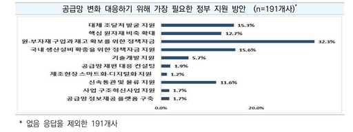 특히 기업들 대부분이 공급망 변화가 '부정적 영향'을 미칠 것으로 내다보고 있는 가운데 가장 큰 애로 사항으로 '원자재 수급 문제'를 꼽았다.