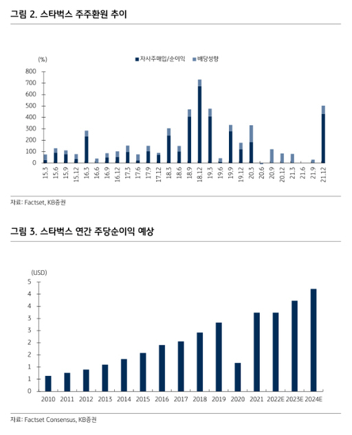 KB증권이 스타벅스에 대해 올해 미국 지역에 대규모 인프라 발전 투자를 예고한 만큼 향후 수익 개선 기대감이 높다고 밝혔다.