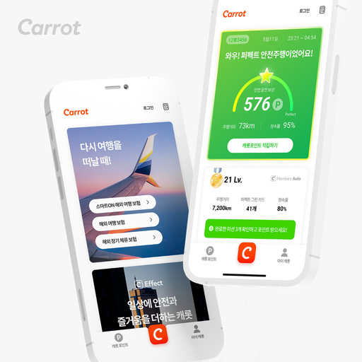 '캐롯멤버스 오토' 론칭과 함께 캐롯 앱도 새롭게 단장했다. 보험상품이 복잡하게 나열된 일반 보험사와 달리 고객의 라이프스타일에 맞춘 상품 추천에 최적화된 디자인을 채택했다.