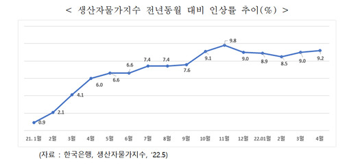 원유, 니켈, 철광석, 펄프 등 원자재 가격이 크게 오른 것이 대표적이다. 이에 따라 지난해 상반기 당시 1~6%(전년동월대비)대까지 빠르게 오른 생산자물가지수(PPI)는 이후에도 꾸준히 상승하면서 올해 들어선 8~9%대의 인상률을 기록하고 있다.
