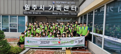 DB손보 임직원과 DB프로미 농구단 등 60여 명이 참여해 원주시 가족센터와 함께 주거 취약 가구 4곳을 찾아 도배지와 장판 교환, 화장실 보수 및 싱크대 교체 등의 주거문화 개선 봉사를 실시했다. 쌀 500㎏도 함께 후원해 지역사회의 저소득 가정에게 따뜻한 온정을 전달했다.