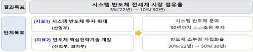 대표적인 예가 핵심 재정사업 중 하나인 반도체 인력 양성 사업이다. 이 사업은 교육부와 산업통상자원부, 과학기술정보통신부 등 여러 부처가 연계돼 있는데 현재 3% 수준인 국내 기업 시스템반도체 세계시장 점유율을 2030년까지 10%로 올리는 것을 목표로 중점 관리할 계획이다.