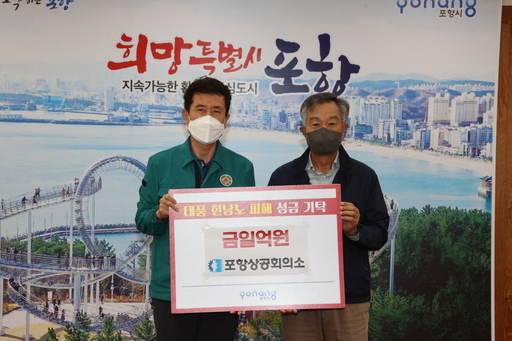 포항시에 따르면 지난 9월 14일 포항상공회의소는 시청을 방문해 포항 지역 태풍 '힌남노' 피해 복구 지원을 위해 성금 1억 원을 기탁했으며, 이어 신세계건설(주)과 포항성모병원에서도 각각 성금 1억 원을 기탁하면서 포항시와 피해 주민들을 돕기 위해 힘을 보탰다.