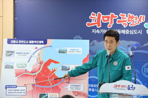 이강덕 시장은 "기후 변화 시대 잦아지고 강력해지는 자연 재난에 근본적으로 대비하는 방재정책의 대전환을 통해 시민과 기업이 안심할 수 있는 안전도시 포항을 만들겠다"라고 말했다.