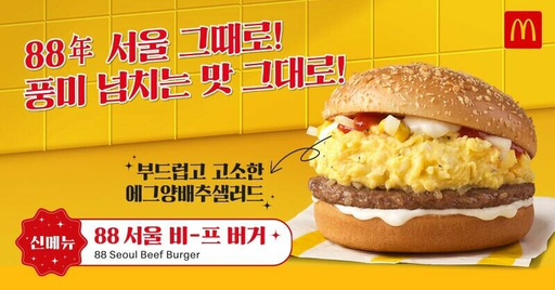 맥도날드는 지난달 1980년대를 테마로 '88 서울 비-프 버거'를 선보였다. 맥도날드는 1988년 압구정 1호점을 시작으로 국내에 처음 진출했다. 더불어 1988년 서울을 배경으로 하는 넷플릭스 영화 '서울대작전'과 협업해 1980년대 한국의 감성과 향수를 재현했다.