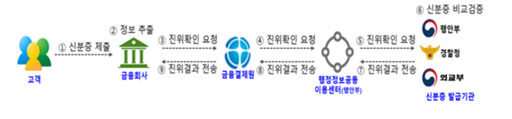 비대면 계좌개설시 본인확인 절차로 신분증 사본제출을 택할 경우 금융결제원 신분증 진위확인시스템에서 진위여부를 검증받아야 한다. 진위여부가 확인되지 않으면 영상통화와 기존계좌를 통한 본인확인절차가 진행된다.