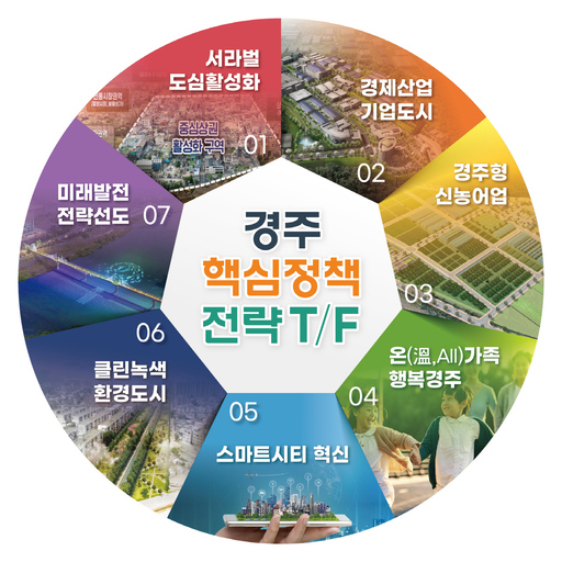 주요 과제전략 T/F로는 ▲서라벌 도심활성화 ▲경제산업 기업도시 ▲경주형 신농업 ▲온 가족 행복경주 ▲스마트시티 혁신 ▲클린녹색 환경도시 ▲미래발전 전략 선도 등이다.