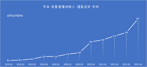 임윤화 여신금융연구소 선임연구원은 "후불결제서비스의 경우 상대적으로 신용거래 기록 등이 필요하지 않기 때문에 이용하기 쉬워 대출규모가 커지고 있다"며 "다만 기준금리 상승으로 자금조달 비용이 상승하고, 소비자 지출에 따른 연체율 상승하는 상황에서 규제가 강화될 경우 업계에 상당한 충격으로 작용할 수 있다"고 말했다.
