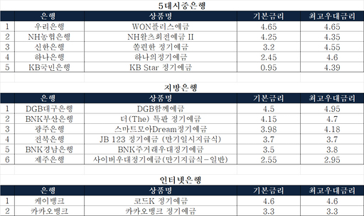 특히 주요 시중은행의 정기예금 금리는 인터넷은행 금리를 넘어섰다.