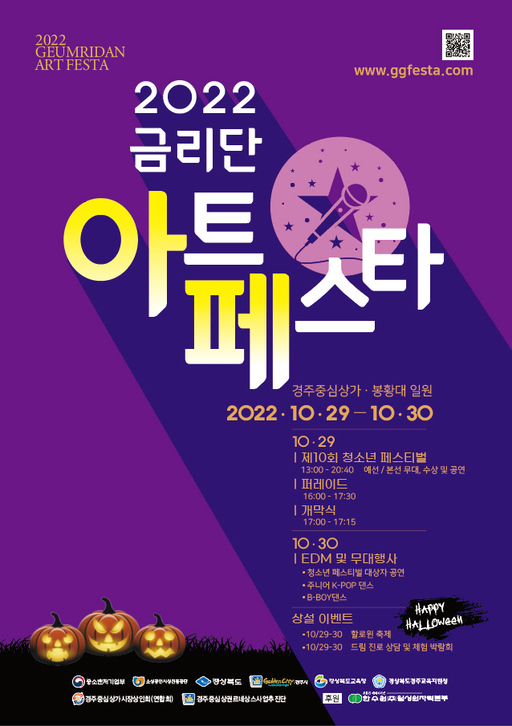 경주중심상권르네상스사업추진단과 경주중심상가시장상인회가 공동 주최·주관하는 이번 행사는'청소년 가요제&댄스 페스티벌' 과 청소년들을 위한 진로 및 체험 박람회가 펼쳐진다. 또 중심상가 소비 진작을 위한 할로윈 이벤트, 고적대와 거리댄스팀의 퍼레이드, 할로윈 이벤트 등 다채로운 행사로 방문객들의 발걸음을 유도할 예정이다.