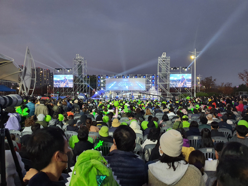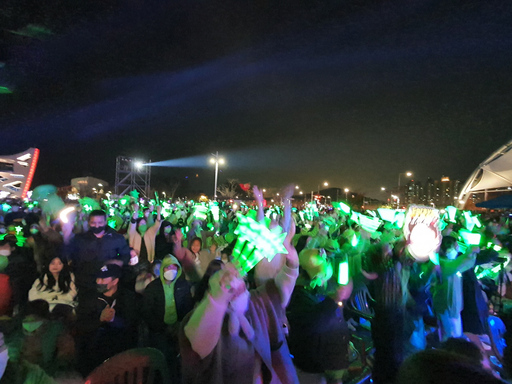 무대 맨 앞자리에서 초록색 옷을 입고 정동원군의 공연을 관람하러 안산에서 왔다는 팬은 "팬클럽 카페에서 무료공연이 공지되어 많은 팬들이 영종도까지 찾아왔다"며 "정동원의 공연을 가까이서 보기 위해 아침 10시에 도착해 자리를 잡았다"고 말했다.