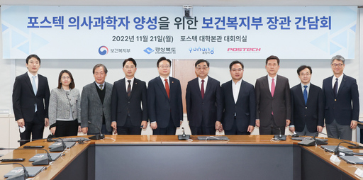 경상북도는 11월 21일 포스텍 본관 대회의실에서 포항시·포스텍과 함께「의사과학자 양성 보건복지부 장관 간담회」를 통해 포스텍 연구중심 의대 설립을 향한 대정부 공감대 형성의 장을 마련했다.