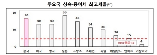 상속·증여세율 50% 22년간 유지…"세 부담 세계 최고"
