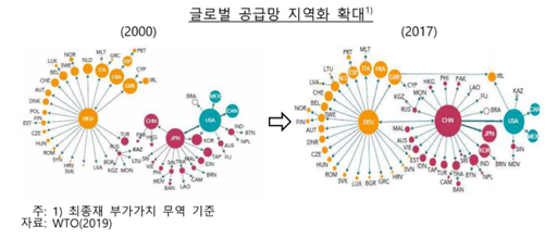 앞서 미국은 대중무역적자가 증가하고 중국의 불공정 무역관행에 따라 미·중 무역갈등이 심화된 바 있다. 최근에는 중국의 주요 IT기업을 국가안보 위협으로 간주해 대중제재를 확대하고 있다. 글로벌 가치사슬(GVC)에서 높은 비중을 차지하는 미국과 중국의 자국우선주의가 지속되고, 자국 중심의 외교정책을 추구하는 인사들이 약진하면 향후 분절화가 심화될 수 있다.