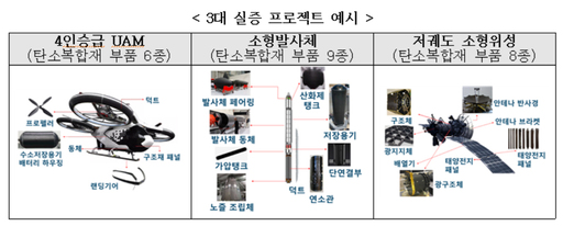 탄소복합재의 내수 규모를 키우고 세계 시장을 공략하기 위해 총 1000억원 규모로 우주항공 분야 3대 실증 프로젝트도 추진한다.