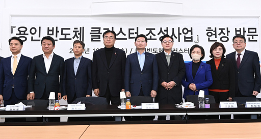 국민의힘이 7일 경기 용인 반도체 클러스터 공사 현장을 찾았다. 이 자리에서 당은 K-반도체 발전을 위해 관련 특별법 제정, 예산 지원 등에 노력할 것이라고 약속했다.
