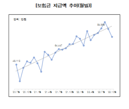 귀염증, 피부질환은 15만원 이하로 지급됐다. 피부질환은 매년 7월~10월 보험금 지급건수가 증가하다 감소하는 계절성을 보였다.
