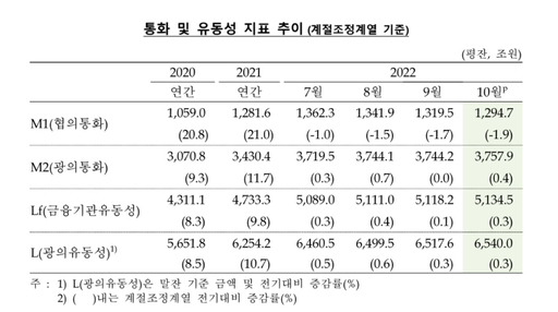 한은, '2022년 10월 통화 및 유동성'
