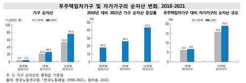 다주택 가구와 무주택 가구의 순자산 격차는 2018년 15.6배에서 2021년 19.0배로 벌어졌다는 분석이다.