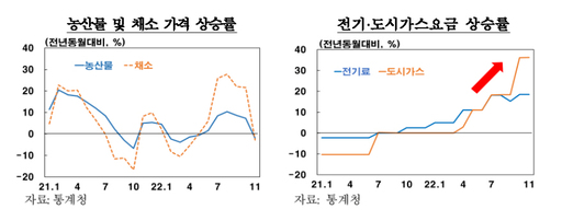 다만, 한은은 외식에 영향을 미치는 가공식품 가격이 높은 흐름세를 지속하는데다 근원물가 전반에 영향을 미치는 전기·도시가스 요금 인상폭이 확대될 경우 소비자물가 둔화폭이 상쇄할 수 있다고 분석했다. 특히 전기·도시가스 요금의 경우 지난해 이후 국제유가 상승으로 원가부담이 높아지면서 내년에도 요금이 상당 폭 인상할 것으로 예상된다