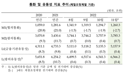 한국은행, '2022년 11월 통화 및 유동성 동향' 발표