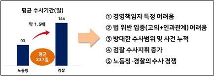 보고서에 따르면 사망 등 중대재해 발생 기업 관련 수사가 장기화하는 경향이 있다.