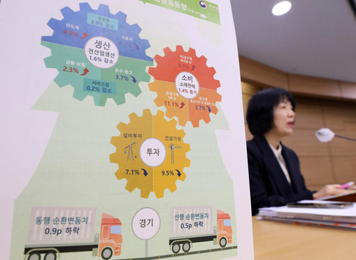 광공업 생산은 전월보다 2.9% 감소하며 두 달 만에 하향세로 돌아섰다. 반도체(4.9%) 등에서 늘었지만, 전자부품(-13.1%) 등에서 줄었다.