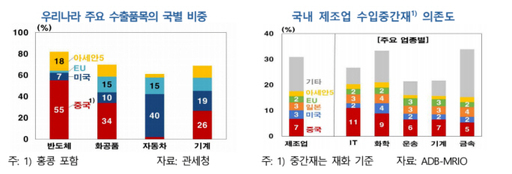 특히 우리나라의 경우 핵심품목 수출이 미국과 중국에 편중돼 있고, 주요 원자재 수입 의존도 역시 높아 상대적으로 영향이 크게 나타날 수 있다.