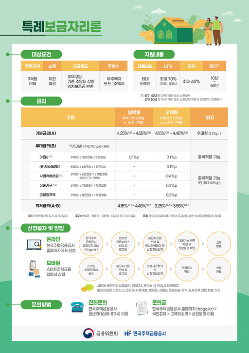 특례보금자리론은 금리상승기 서민 실소유자의 금리변동 위험을 덜어주기 위해 1년간 한시적으로 운영하는 상품이다.