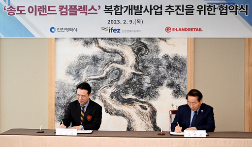 인천경제자유구역청은 9일 송도국제도시 G타워에서 유정복 인천시장과 김진용 인천경제청장, 윤성대 ㈜이랜드리테일 대표 등이 참석한 가운데 '송도 이랜드 콤플렉스 복합 개발 사업 추진을 위한 협약식'을 개최했다고 밝혔다.