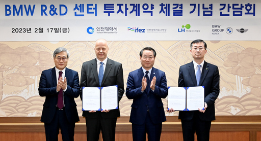 인천경제자유구역청은 17일 인천시청에서 열린 간담회에서 BMW코리아(주)와 한국토지주택공사(LH)가 BMW R&D 센터 건립을 위한 토지임대차 계약을 체결했다고 밝혔다.