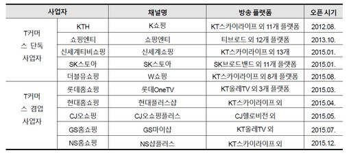 또 T커머스만 단독으로 하는 사업자 채널인 K쇼핑, 쇼핑엔티, 신세계쇼핑, SK스토아, W쇼핑 가운데 벼룩시장이 갖고 있는 W쇼핑을 제외한 나머지 채널 역시 대기업이나 통신사가 보유하고 있다.