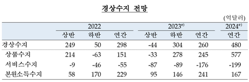 지난해 경상수지는 298억3000만달러 흑자로, 2021년의 약 3분의 1수준, 2011년 이후 가장 적은 규모를 기록했다. 무역수지 적자가 이어지는 상황에서 경상수지를 구성하는 여행수지 적자까지 확대돼 경상수지 개선이 제약됐다.