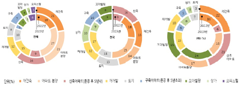 보고서는 "주택시장 호황기에 관심이 높았던 재건축의 경우 2018년 1위를 기록한 이후 축소돼 3위를 유지하고 있다"며 "최근 재건축 규제 완화 등에 따라 투자수요 증가로 이어질 지 관심이 모이고 있다"고 말했다.